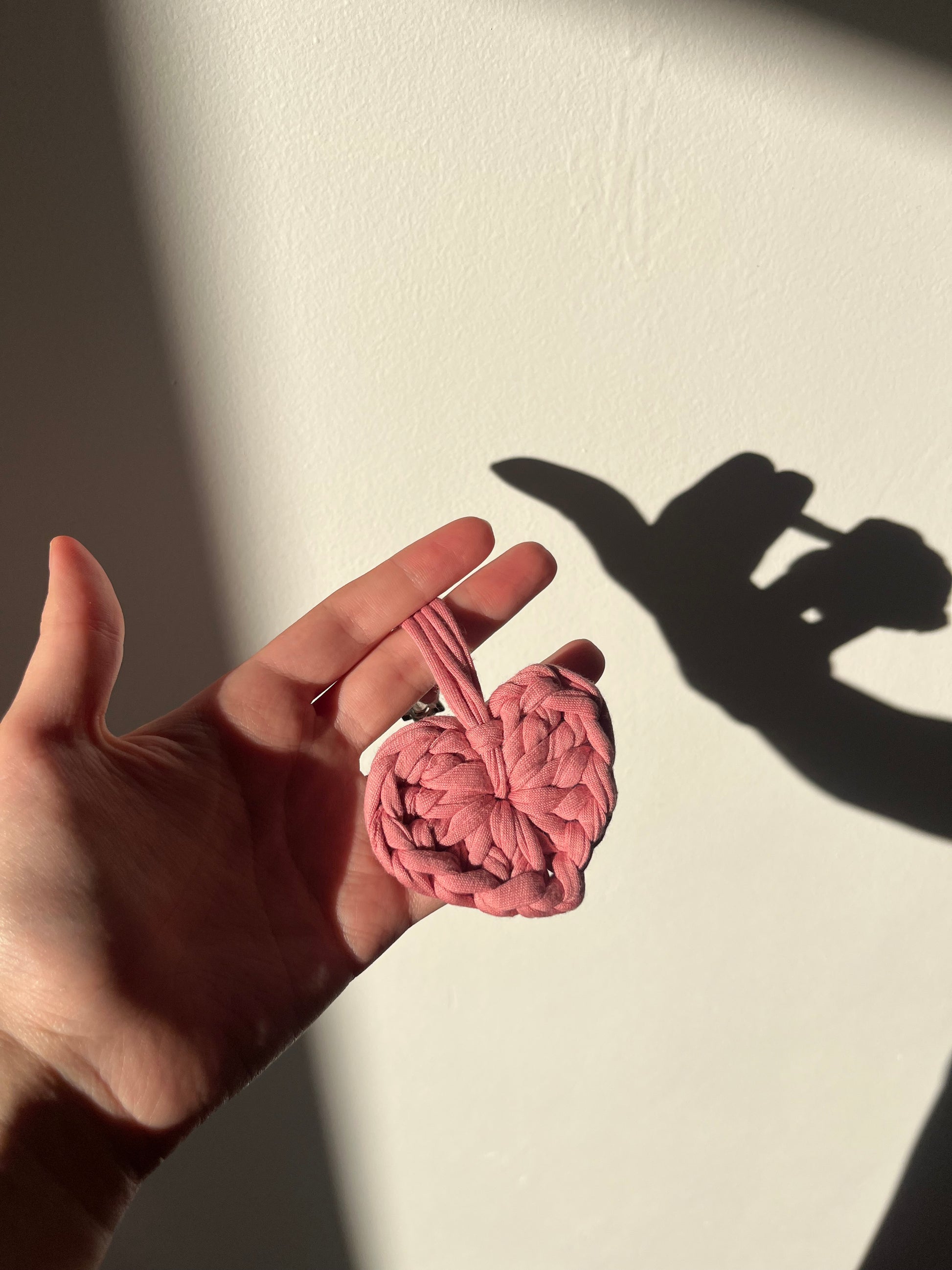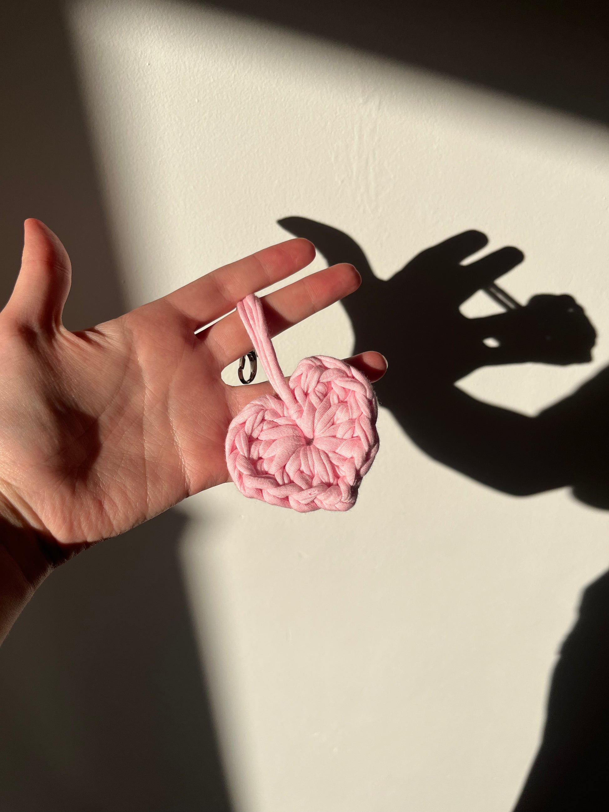 Ręcznie szydełkowany breloczek w kształcie serca – uroczy drobiazg, który sprawdzi się jako prezent lub miły akcent dla siebie. Możesz przypiąć go do kluczy, torebki czy plecaka, by zawsze mieć przy sobie odrobinę ciepła i dobrej energii.