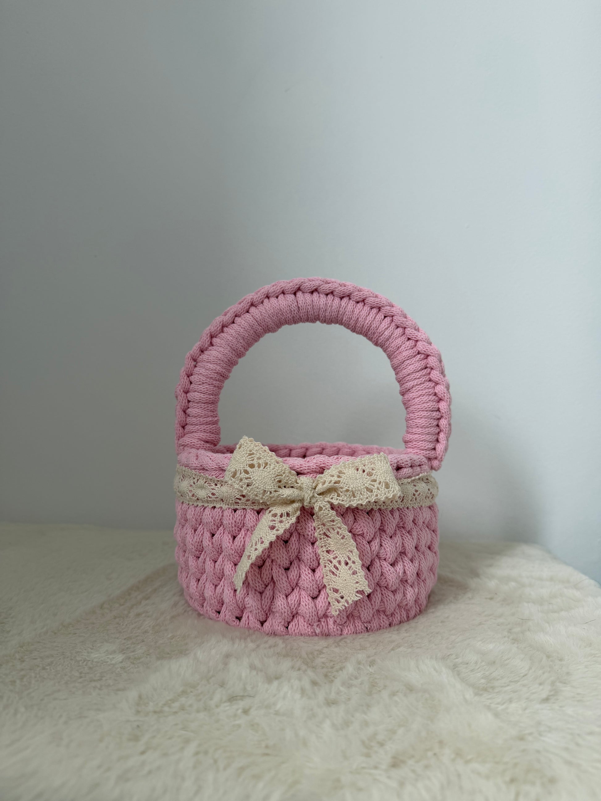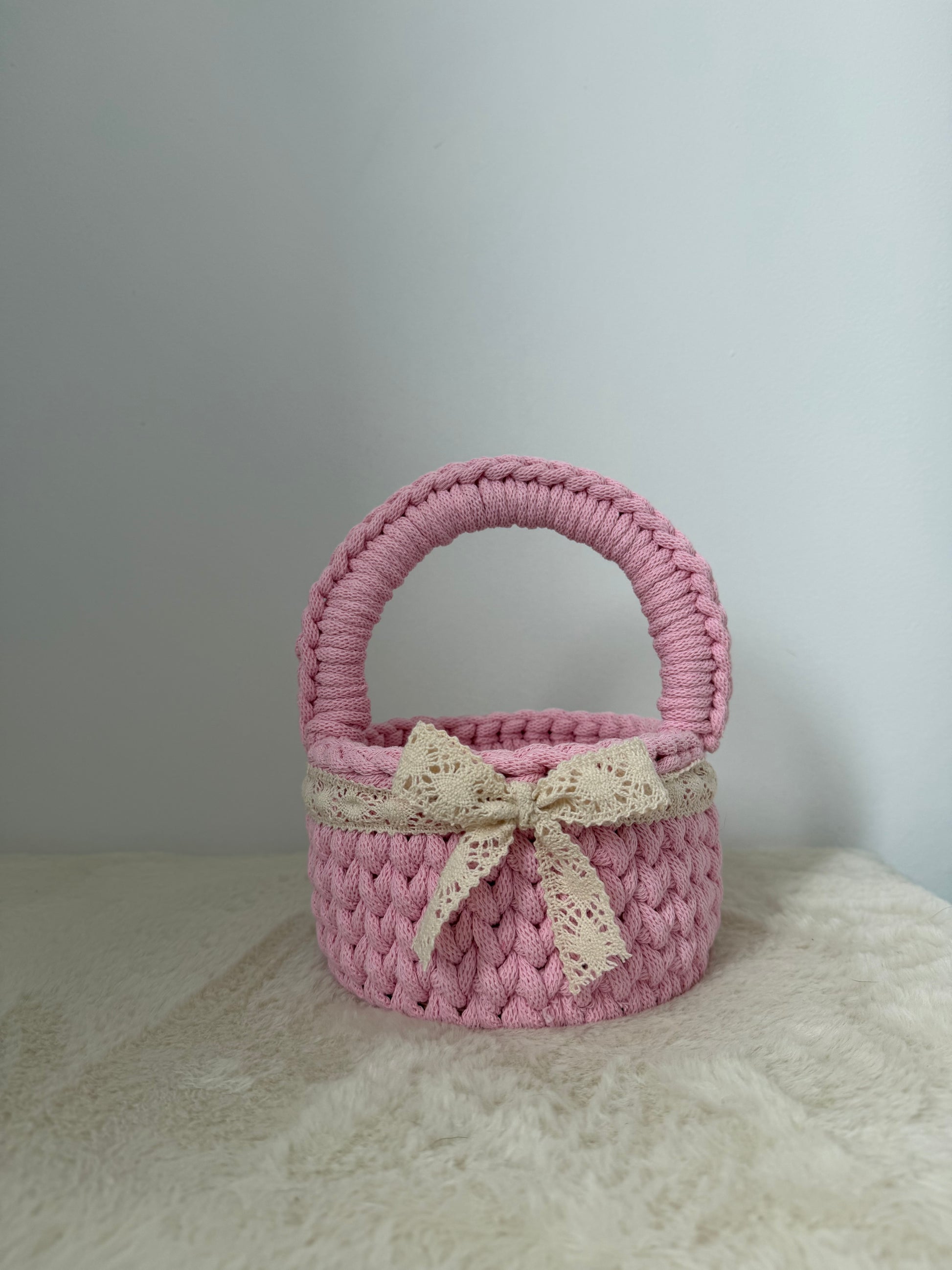 Ten śliczny, ręcznie robiony koszyczek wielkanocny został wykonany ze 100% bawełnianego sznurka – jest miękki, bezpieczny i idealny dla małych rączek! 🧺