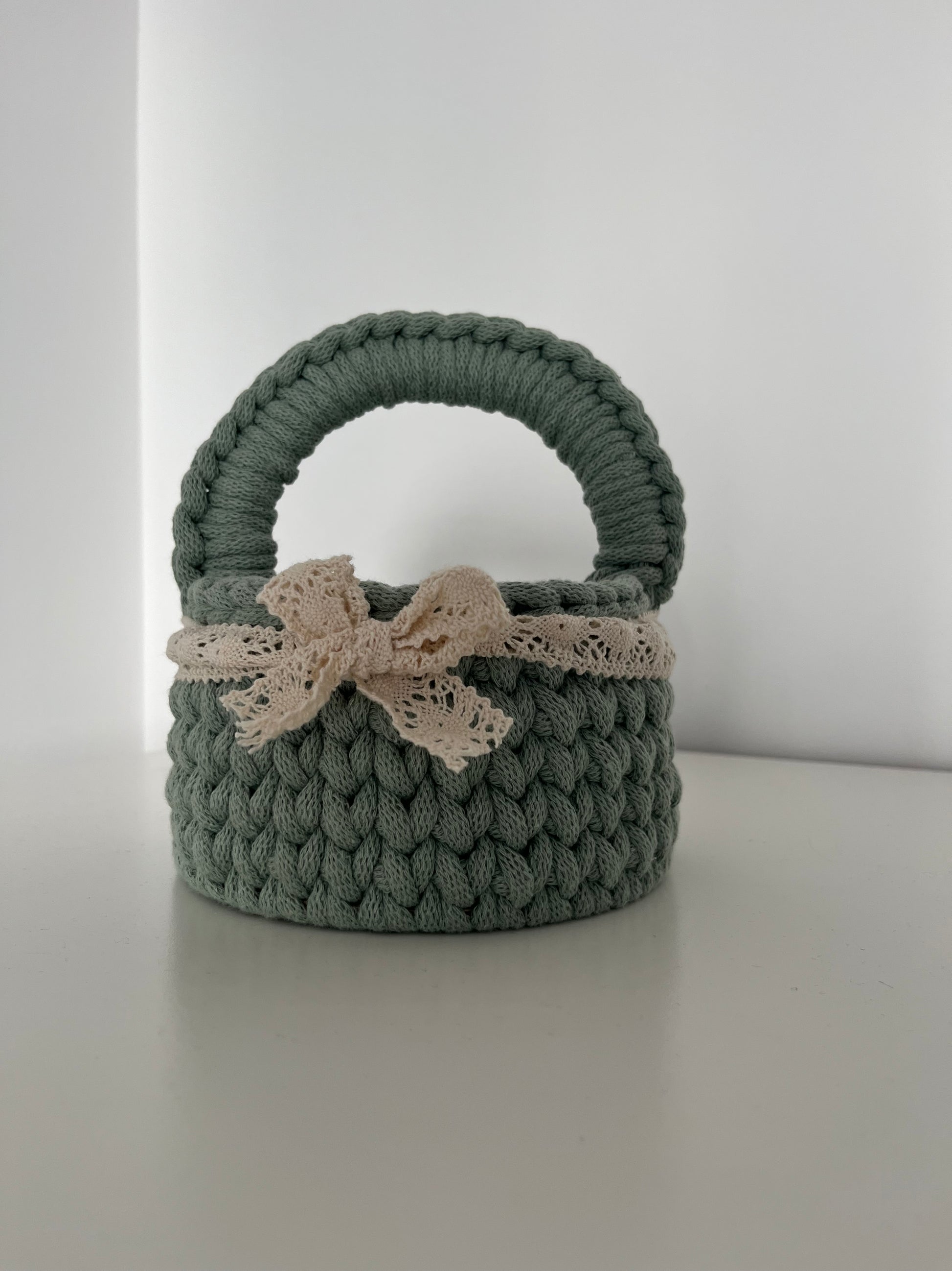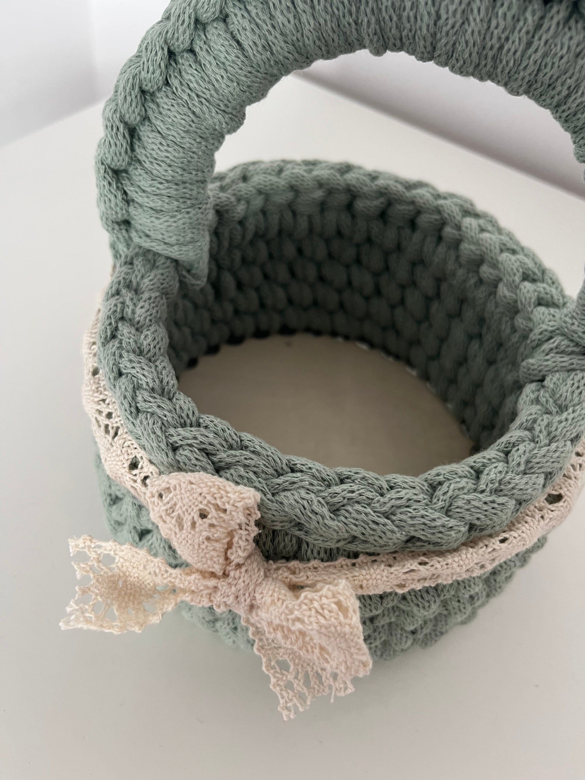 Ten śliczny, ręcznie robiony koszyczek wielkanocny został wykonany ze 100% bawełnianego sznurka – jest miękki, bezpieczny i idealny dla małych rączek! 🧺