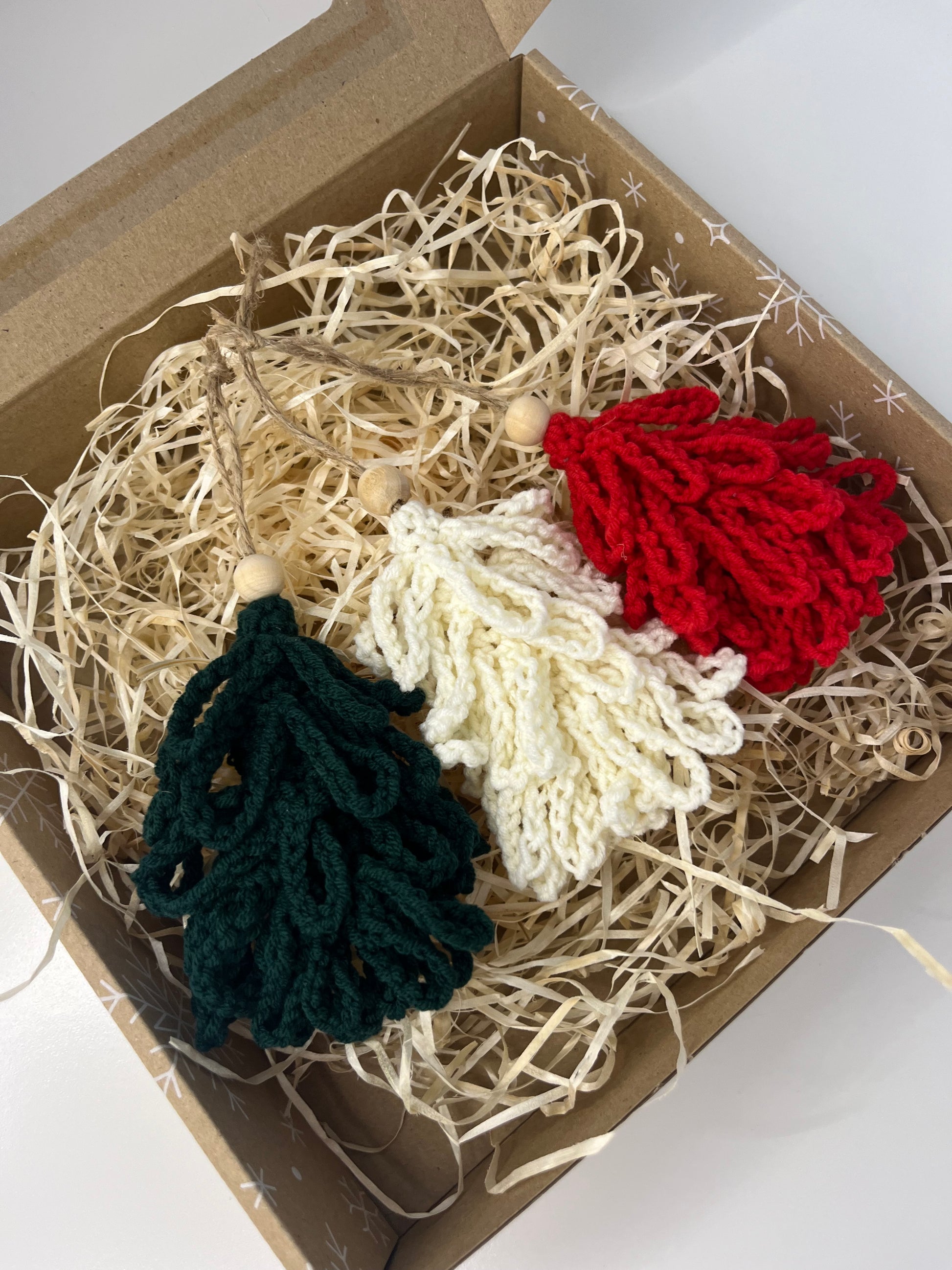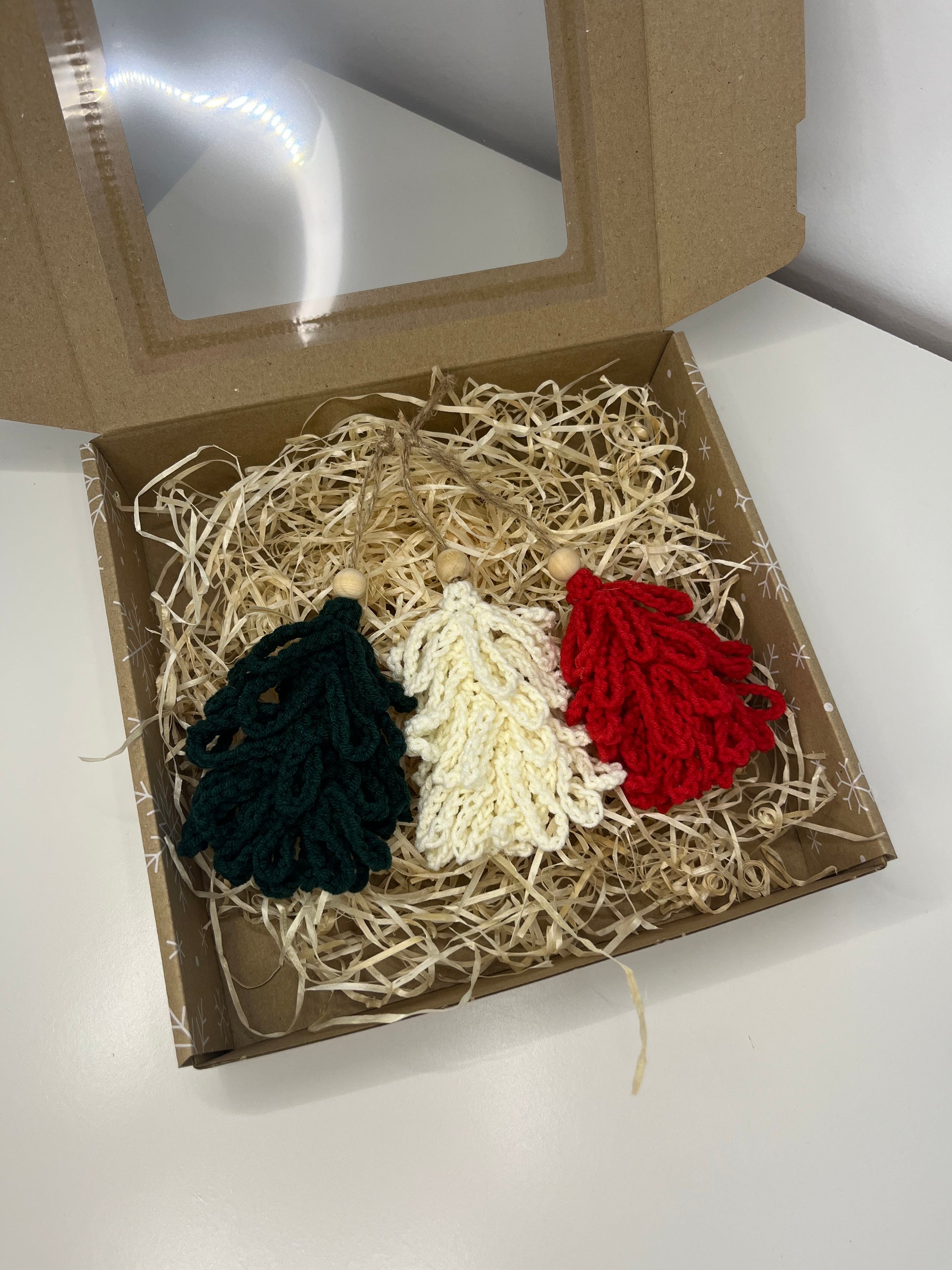 Zestaw trzech szydełkowych choineczek, które dodadzą Twojej choince przytulnego, naturalnego klimatu. 🌲